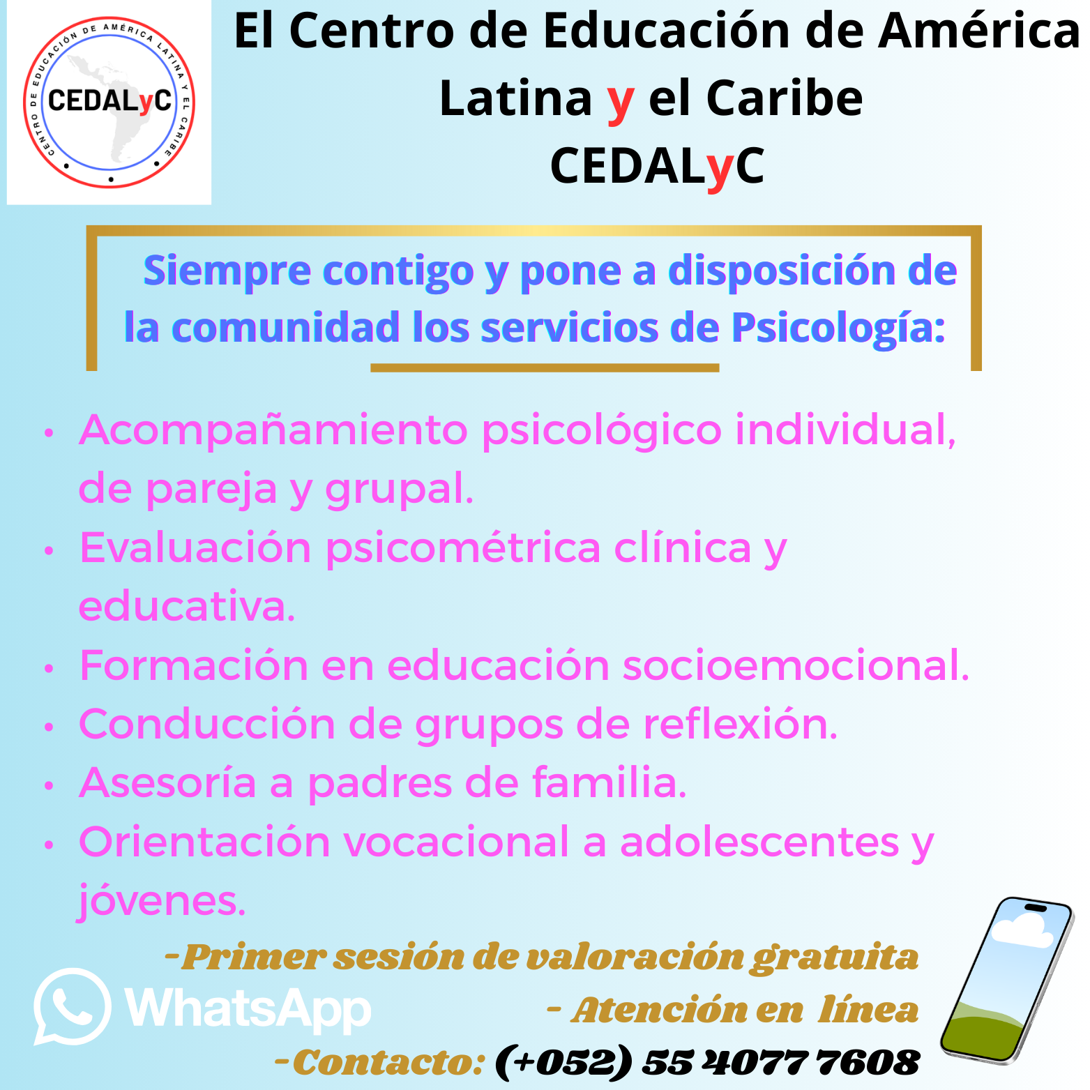 Contacto con psicólogo especialista vía WhatsApp: