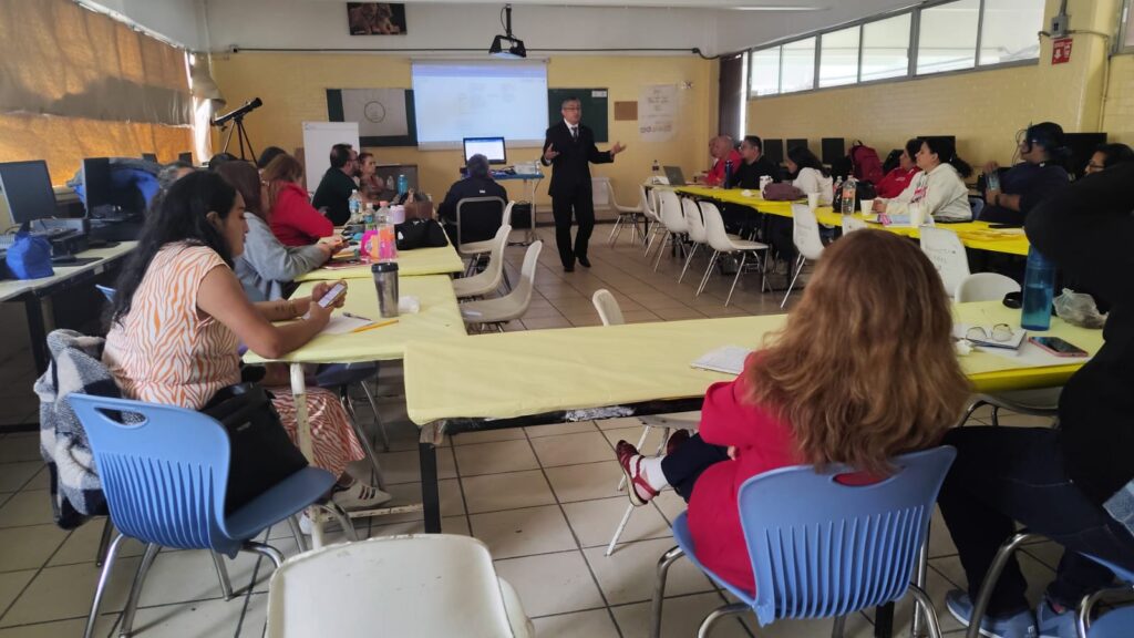 El pasado miércoles 27 de agosto, el Dr. Joaquín Meza Rodríguez y la Lic. Ariadna Del Carmen Treviño Palacios impartieron una conferencia de alto impacto sobre Inteligencia Artificial dirigida a los docentes de la Escuela Secundaria Técnica No. 42 «Ing. Alejo Peralta y Díaz Ceballos». Esta actividad formativa se enmarcó dentro del taller de Fase Intensiva para docentes, una iniciativa clave promovida por la Secretaría de Educación Pública para fortalecer las capacidades tecnológicas y pedagógicas de los profesores en las escuelas de México.