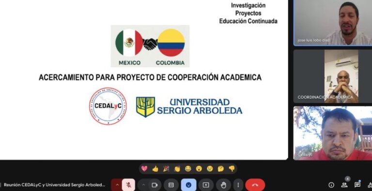El pasado viernes 31 de enero, se llevó a cabo la reunión en línea, entre autoridades del CEDALyC y la Institución Universitaria de Santa Marta (USM), con sede en Colombia, a fin de trazar una ruta de trabajo para colaborar
